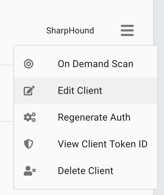 - Tenant configuration of SharpHound Enterprise occurs within the Config -> Administration -> Manage clients view.